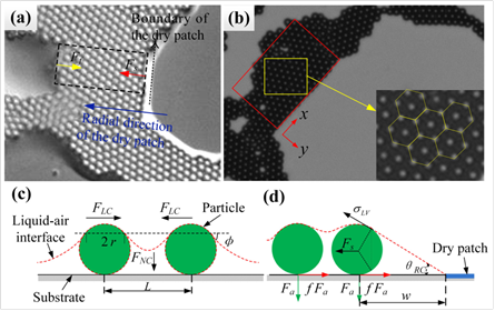 近期,中科院力学所微重力重点实验室王育人团队针对空间中胶体液滴操控及液滴内颗粒沉积动力学的研究取得重要进展。一是基于实践十号(SJ-10)卫星提供的高水平微重力实验平台,集成表面浸润性修饰、复杂流体均匀分散等多项关键技术,发展了一套空间复杂流体管理系统,成功实现了胶体液滴在太空的生成和操控。相关结果发表在Langmuir (W. Li, H. Sun, D. Lan, and Y. Wang, 2018, DOI: 10.1021/acs.langmuir.8b00219)及Microgravity Sci. Technol. (W. Li, D. Lan, Z. Sun, B. Geng, X. Wang, W. Tian, G. Zhai and Y. Wang, 2016, DOI: 10.1007/s12217-016-9497-6)上,并授权多项国家发明专利。二是首次在咖啡环内部发现了二维网络状图案,提出去浸润和颗粒组装之间的相互耦合机制是决定沉积结构的主要原因。通过进一步研究,发现重力沉降、气液界面收缩及毛细补偿流在蒸发不同阶段的相互协同和竞争共同影响了颗粒的聚集状态,提出了正置和倒置液滴中颗粒运动的追击和相遇机制。相关结果发表在Langmuir (W. Li, W. Ji, H. Sun, D. Lan, and Y. Wang, 2018, DOI:10.1021/acs.langmuir.8b02659, 被期刊选为补充封面)及Physical Review E (W. Li, D. Lan, and Y. Wang, 2017, DOI: 10.1103/PhysRevE.95.042607)上。