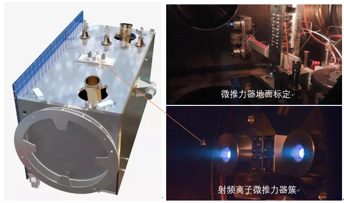 图2 “太极一号”卫星模型和射频离子微推力器簇