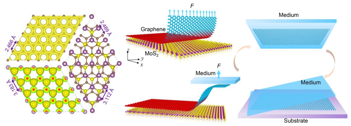 图1 范德华异质结 (graphene/MoS2) 及其剥离模型