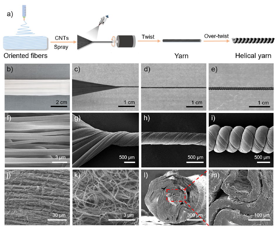图 具有多尺度缠绕互锁螺旋结构的碳纳米管(CNTs)/聚氨酯(PU)纤维