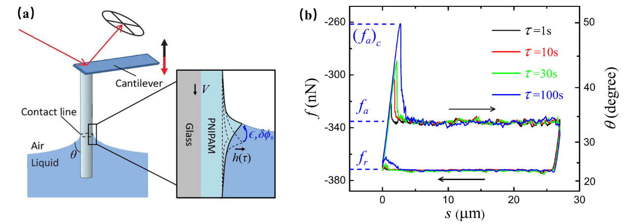 图 悬针式原子力显微镜测量三相接触线的动力学特征与在软物质表面上的力迟滞环