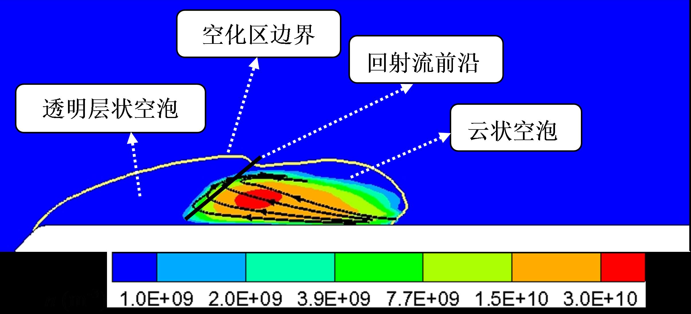利用该模型,研究人员对云状空化流动的机理有了更进一步的认识:获得了更丰富的流场信息,揭示了空化区从透明层状空泡向不透明云状空泡的演化机制:回射流与空泡的相互作用。回射流越强,空化区越容易破碎成小气泡。