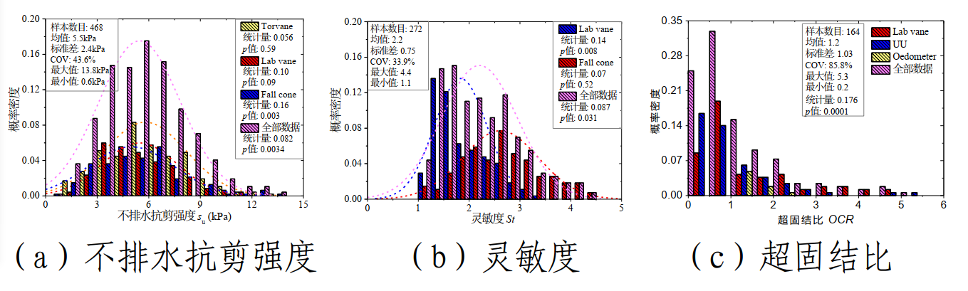 如何科学确定深海沉积物的工程特性是深水油气资源开采面临的关键挑战之一。力学所流固耦合系统力学重点实验室流固土耦合力学研究团队与中海油研究团队,针对从中国南海北部海域某深水区采集的海底沉积物柱状样,进行沉积物微观结构的扫描电镜测试、矿物成分的X射线衍射试验、以及物理和力学性质的宏微观特性分析。研究发现,与传统的陆源沉积物不同,该深水区海底沉积物通常为有机质软黏土,具有高含水率、低密度、高孔隙比、高液限、高可塑性、低强度等典型特征。统计分析结果表明,其物理和力学指标均呈现变异性,且后者普遍高于前者。沉积物的比重、含水率、液塑限和塑性指数均服从正态分布;容重、碳酸盐含量、不排水抗剪强度、灵敏度接近假设检验结果,近似服从正态分布。进而,研究得到了深海沉积物的统计学特性对深海长输管线整体屈曲的影响规律;揭示了海流作用下海底管道侧向失稳与侵蚀悬空的模式竞争机制。