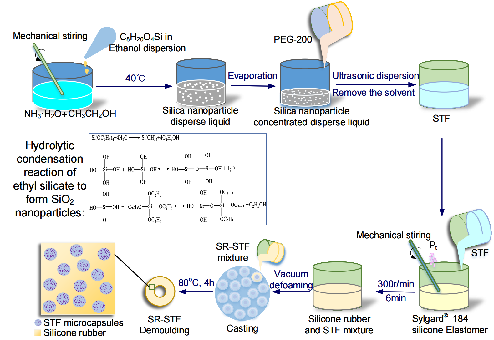 剪切增稠流体(STF)是一类非牛顿流体,在低应变率下具有较好的流动性,冲击条件下由于粘度急剧增加而快速吸能,一定程度上协调了防护装备的柔韧性与坚固性之间的矛盾,在柔性冲击防护领域具有重要的应用价值。前期,我们对STF的冲击动力学行为及其与结构的相互作用进行了研究,获得了STF压缩诱导液-固相变新机制、良好的动态能量吸收特性以及与结构的耦合增强耗散效应(J Appl Phys 2015; Appl Phys Lett 2015; Int J Mech Sci 2018; Int J Impact Eng 2020)。但是,由于常规呈流体状态的STF难以有效密封,一直是困扰其在柔性冲击防护领域应用的难题。