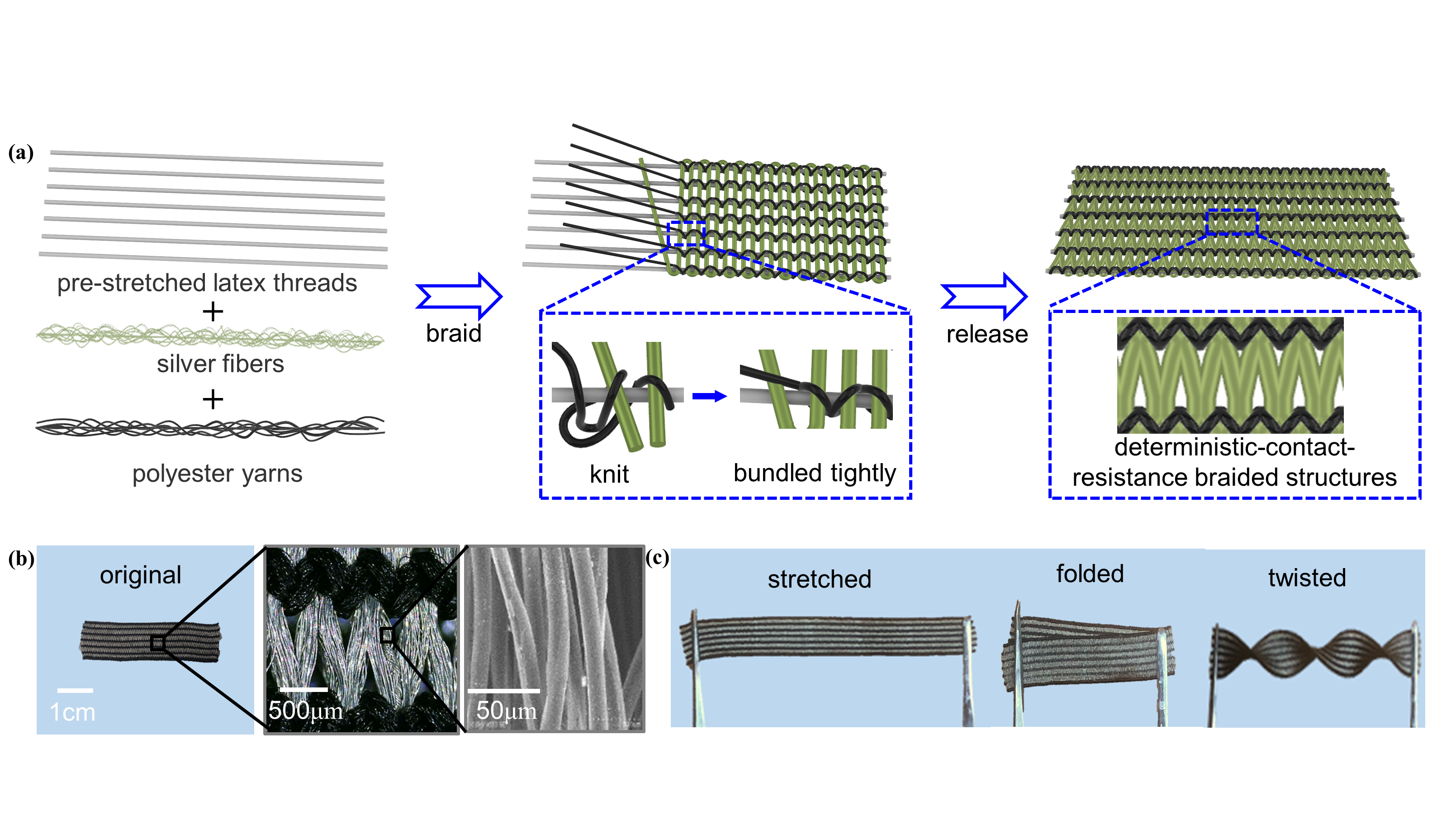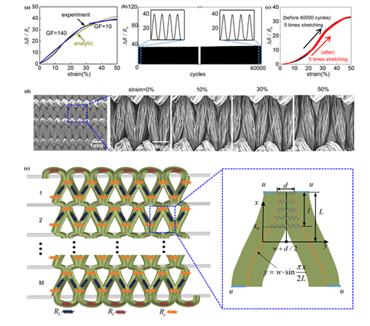 高性能、可量产的确定性接触电阻式编织结构大应变传感器
