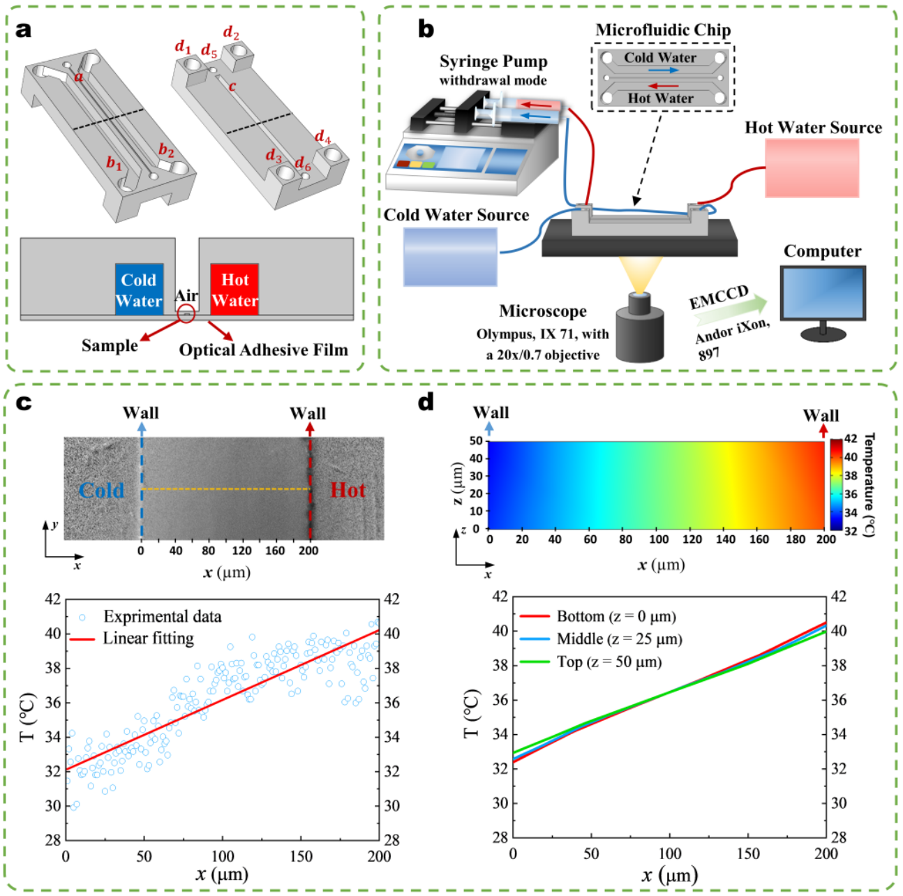 图1. 微流控芯片及其中温度梯度的建立