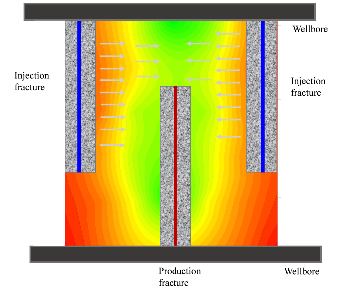 图2. 致密油藏体积压裂水平井线注线采流动过程