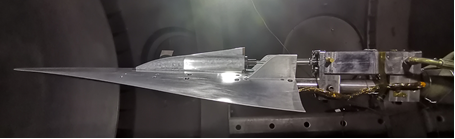 考虑到上述传统的TSTO高超声速级间分离方案引起的复杂动态强激波干扰问题增加TSTO分离失败风险,力学所研究团队创新性首次提出并联TSTO的纵向级间分离方案,即轨道级沿着助推级进行小间隙分离,可以有效避免两级在高超声速分离过程中的强气动干扰,大大增加两级安全分离的可靠性,并且首次提出了Spiked TSTO气动外形应用于纵向分离的减阻方法。在JF-12复现高超声速飞行条件激波风洞对并联TSTO纵向分离方案在马赫7条件下开展了原理性试验验证(图4和图5),TSTO动态自由飞分离试验证明了纵向分离方案的安全性与可靠性。该试验为国内外首次在激波风洞中开展较大尺度的并联TSTO主动式动态分离试验,同时,针对激波风洞特种分离试验,建立了较为完备的激波风洞多体动态分离试验技术体系,测量技术获得多项国家专利。力学所发展的风洞高速分离特种试验技术方法已在国家重大任务项目中投入工程应用并获得国家航天工程部门高度评价。