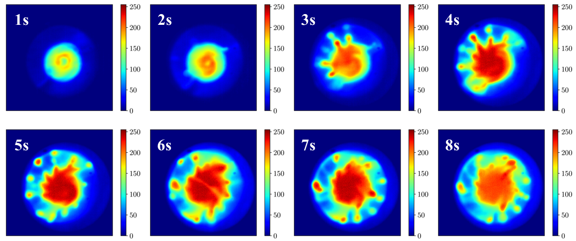 图4 二级结构修饰下的金属强化复合药柱燃烧过程辐射发光成像