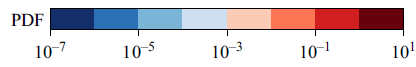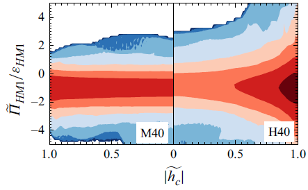 图2 级串通量与交叉螺旋度联合概率密度分布。左:无霍尔效应;右:有霍尔效应;引入霍尔效应后,级串通量集中在交叉螺旋度较强、效率较低的区域