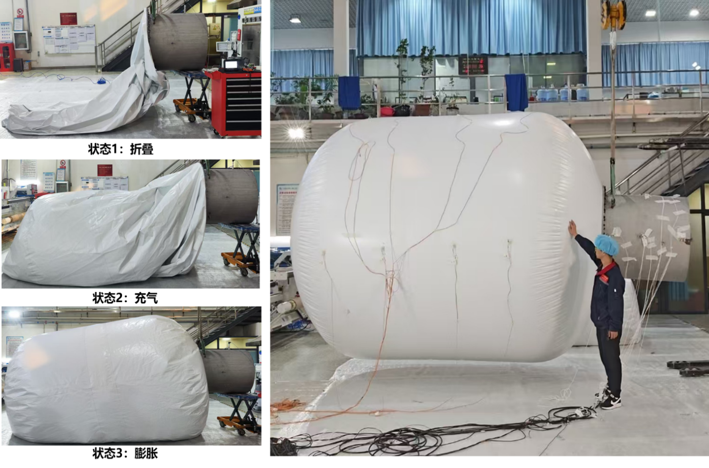 在沈阳自动化所的真空试验中,团队在模拟的真空环境下,首次精确获得了柔性舱体完全展开的临界压力与气体消耗量。这组关键参数为未来在轨任务规划提供了重要依据。