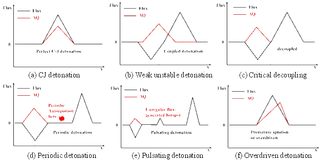 爆轰波的非定常传播过程是一个多物理场耦合问题,包含了激波、稀疏波、化学反应放热、化学反应动力学、以及内能和动能的相互转换。实验研究和数值模拟研究所测量得到的压力、温度、密度、速度等传统热力学参数,都是这些物理场相互作用的最终结果,无法区分每个物理场的具体作用,也就无法给出准确的物理机理解释。