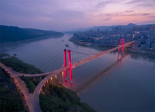 它位于重庆市丰都县,是一座钢筋混凝土结合梁浅加劲悬索桥,主桥长620米,主跨450米,引道长1.48公里,于1997年1月20日建成通车。