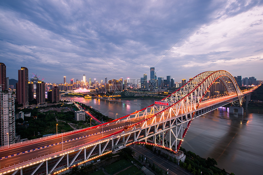 它位于重庆朝天门(长江与嘉陵江交汇点)下游1.7公里,是连接重庆市南岸和江北中央商务区的重要过江通道,定位为江上城市之门。线路全长1741米,主桥长932米,为三跨中承式连续钢桁系杆拱桥,主跨长552米,于2009年4月29日通车。