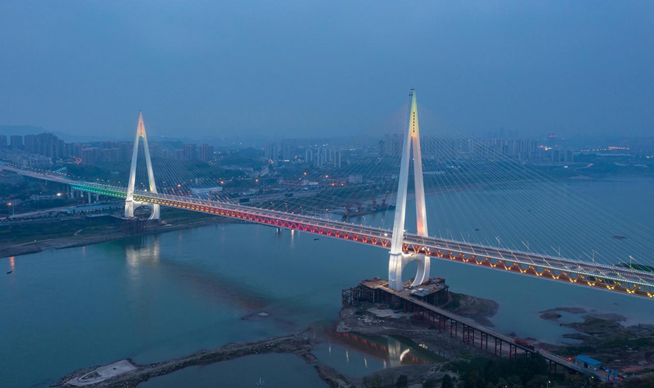 它位于重庆市境内,是连接江津区与九龙坡区的过江通道,由双层钢桁架、两座桥塔、斜拉索、引桥及各立交匝道组成,全长895米,主跨464米。于2013年6月26日通车运营。