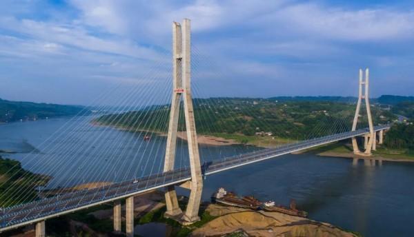 它位于重庆万州主城区,桥梁主线总长2.12公里,主跨730米,是一座公路双塔斜拉桥,于2019年5月30日竣工。