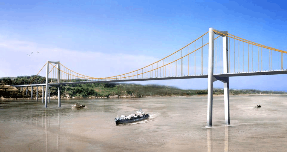 它位于重庆江津市境内,拥有国内第一不得高斜腿框架桥塔。大桥全长1178米,主跨760米,为单跨钢箱梁悬索桥,主塔为八字型门式框架结构,矩型空心塔柱。定于2022年7月通车。