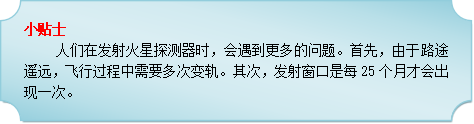 总之,探测火星要比探月困难得多,征服火星的道路既漫长又艰险。但是,我们人类的飞天梦想不会就此停止。