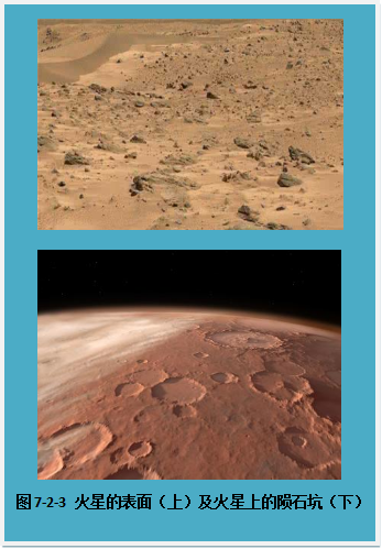 但是在火星的历史上存在过生命吗?现在的火星上还有没有如微生物这样比较低级的生命呢?在下一节中,我们将要讨论这些问题。