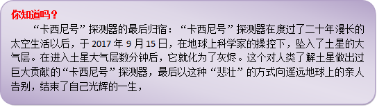 为了能够近距离去一窥土星的真容,美国和欧洲的科学家合作,花了数年时间,耗费了数十亿美元,研制了一台名为“卡西尼号”的土星探测器。1997年10月,“卡西尼号”发射升空,经过了7年的漫长旅行,于2004年到达土星附近。在随后的数年时间里,“卡西尼号”不负众望,传回来了无数土星的清晰照片及许多宝贵的数据,为人类了解土星、土星的光环及它的卫星提供了大量的第一手资料。