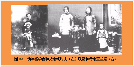 钱学森的母亲章兰娟是一位聪明内秀、知书达理的才女。她性格开朗、心地善良,计算能力和记忆力都非常之高,而且心灵手巧,特别擅长缝纫和刺绣。由于父亲一直公务在身,母亲就承担了教育幼小钱学森的职责。章兰娟对于儿子的教育方式总是动之以情、晓之以理,给幼小钱学森每日安排的功课是:清早按时起床,进行身体锻炼;早饭后背诵诗词或阅看儿童读物;午饭后跟着母亲学画画或写毛笔字。每天如此,从不间断,钱学森就这样从小养成了良好的学习习惯。