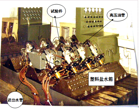 当时,加载的实验平台的加工找到了河北省胶河县的一个机械加工厂;供给高压油源的液压柜和稳定系统油压的高压蓄压器是在上海液压件厂和上海高压元件厂订购的;在航天部北京33所订购了32台电液伺服系统,即作动筒;还在福建省闽侯县机修厂和福州化工机械厂订购了铜油管接头和高压阀门等等。在油路铺设和安装过程中,我们请来了北京综合机械厂的工人师傅一起铺设了数百米长盘根错节的铜质高压油管,包括数百个油管接头和八十个阀门的油路系统。通过整体调试,运行中没有出现漏油和油压不稳的情况,一次试验成功。这套试验装置最多可以同时进行16个悬臂梁试件和8个四点弯曲试件的疲劳试验,相当于24台疲劳试验机同时进行工作。另外还有一套海水循环系统,使人工配制的海水循环流过焊接接头试件周围的水箱内,模拟海洋平台在海水中经受腐蚀的实际环境。
