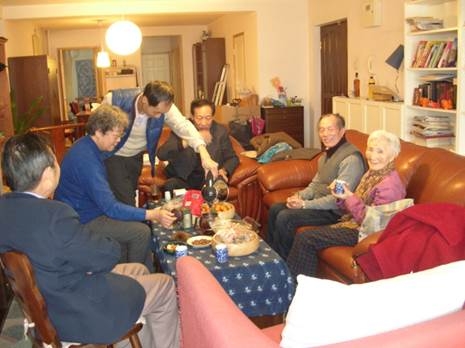 图1 2010年和李佩先生聚会情景:李佩先生坐在沙发上,我坐在李佩先生的左手边