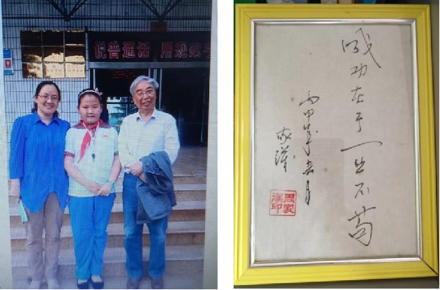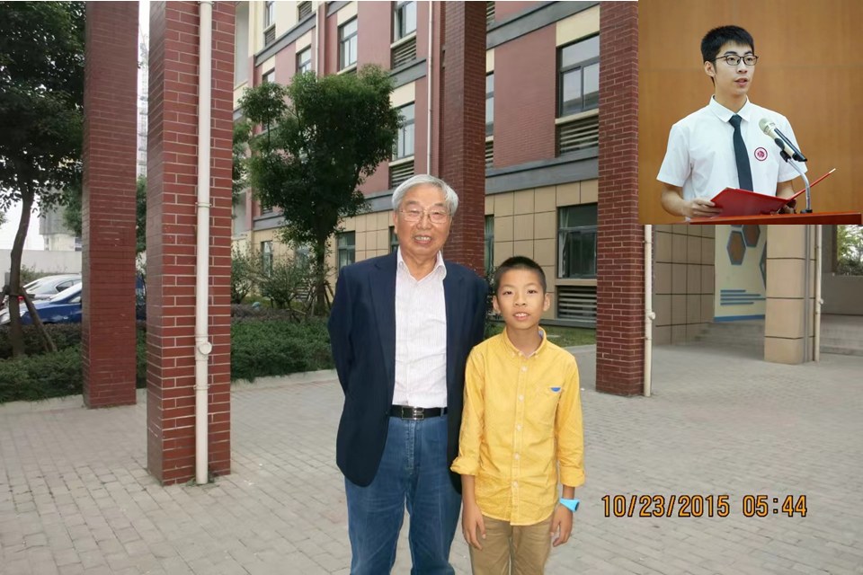 原来九年前,我在浙江湖州一小学讲课结束后,曾经和张南同学有一个合影。现在,张南同学已经是湖州第二中学“多元一体、创学兼顾”活动的带头人,他的发明作品《一种干电池分类及电量检测共享装置》在第十七届“全国普通高中通用技术课程工作会议”创客项目展示中获全国一等奖,目前该作品已获“国家实用新型专利”。他还参加了“太湖水课题”等研究。他妈妈把我们的这张合影寄给中国科学院老科学家科普演讲团名誉团长钟琪老师表示感谢。多么珍贵的礼物啊!我把张南同学在活动中的近照截图下来粘贴在合影照的右上角,展示一个热爱科学少年的成长之路。