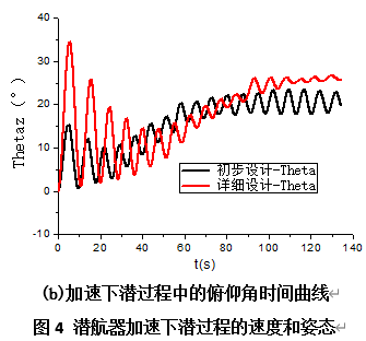 大家知道,潜水器上浮和下潜的距离为万米量级,整个历程的时间很长且位移很大,因此利用计算流体力学(CFD)软件对整个完整的过程进行模拟是不现实的。这样,研究团队根据潜浮过程的速度,将下潜和上浮的过程分为三个阶段:加速运动、稳定运动、减速运动,对这几个阶段分开进行数值模拟计算。由于潜水器运动位移很大,CFD计算中移动边界的处理需要采用局部网格重构。这里不拟详细说明网格重构的工作,只是介绍所求得的潜水器的运动轨迹和姿态。