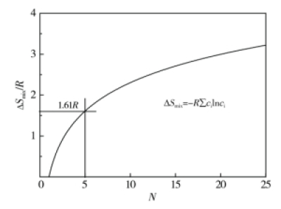 图2 等原子比合金混合熵△Smix与合金元素数目N之间的关系(来源:作者绘制)