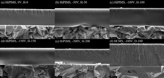 图10 不同偏压下(AlCrVTiZr)N薄膜断面的扫描电镜形貌
