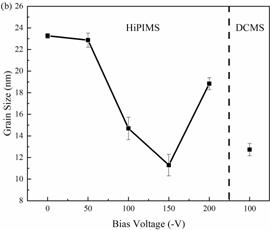 图11 不同偏压下(AlCrVTiZr)N晶体结构(a)和晶粒平均尺寸(b)