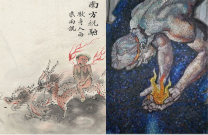 图3 人类始得火种的传说:(左)祝融与(右)普罗米修斯(图片来源:网络)