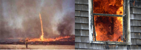 图13 火灾对环境的影响:(左)火旋风(Fire whirl - Wikipedia);(右)火灾中的破窗行为(www.scienceabc.com/eyeopeners/why-do-glass-windows-break-during-fires.html)