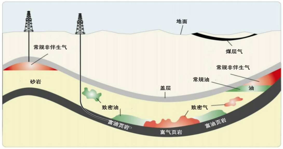 图2 常规石油、天然气与非常规油气空间分布示意图(图片来源:参考文献[2])