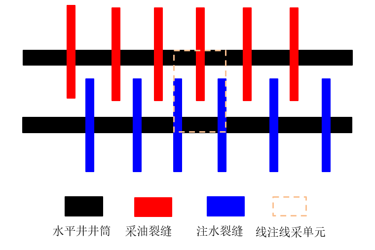图5 致密油藏水力压裂水平井线注线采流动示意(图片来源:参考文献[3])
