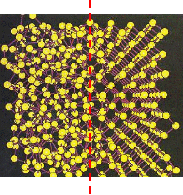图3 金属玻璃和晶体合金的原子排列结构对比图。左边是无序的玻璃态结构,右边是有序的晶体结构(图片来源:文献[1])