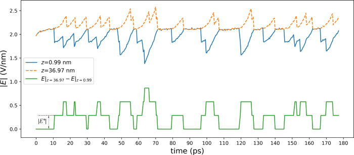 图7 分子动力学模拟系统中施加液面电场的示意图(图片来源:作者自制)