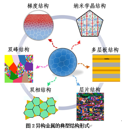 这些异质结构有一个共同点就是材料内部含有强度不同的单元。“异构”金属即指材料内部具有强度差异较大的微观结构单元。这些微观结构单元可能是因为晶粒尺寸、晶体结构、或者材料成分的差异而带来强度(软硬)的差异。由于强度在空间上的差异,在材料变形过程中,这些软-硬单元之间会产生极大的应变不协调。这样,会在软-硬单元域之间产生很大的“背应力”。背应力是指材料内部软-硬单元在变形过程中变形不一致而产生的相互作用力。一般情况下,软单元提供变形,硬单元提供强度。“异构”金属就得益于这种“背应力”的强化/硬化效应,使得材料能够兼备高强度和高塑性的能力,从而实现强度与塑性的完美匹配。