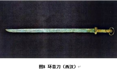 在原始社会,石头是刀的主要制作材料,石刀即是狩猎的重要工具。而当石制兵器被投入战争后,为提高其杀伤力,古人不断对其制作材料进行发展和改进。春秋战国时期,以青铜为材料的青铜剑已经发展得相当成熟,并且出现了复合剑:用含锡较低的青铜做剑脊,韧性强不易断折;用含锡较高的青铜做刃,硬度高且特别锋利,使得对战时的杀伤力提高了一个台阶[5]。随着铁铠的大量使用,对刀剑的强度和韧性有了新的要求,钢出现并成为了刀剑制作的主要材料。环首刀是一种优质的高碳钢刀,它兴起于西汉,约在公元前一百多年,现已发现的年代最早的环首刀是从河北满城刘胜墓出土的[5],很多刀身上都刻有“百练(炼)清(精)刚(钢)”等字样,见图8。百炼钢经过反复折叠锻打,使其组织均匀紧密,析出其中杂质,提高强度,改善韧性,可使其在足够锋利的同时不易折断。随着炼钢技术的发展,满足不同强度和韧性需求的钢被用在刀刃和刀背上,复合刀显现并占据核心地位,比如唐刀,日本武士刀等等。钢的出现极大地推动了社会生产力的发展,在现代社会,钢依然是国民经济与国防建设不可或缺的重要物资。