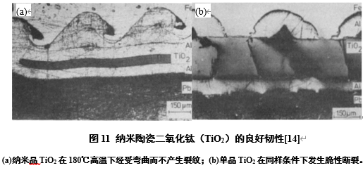近年来纳米科技的兴起,将固体力学带入了宏微观结合的世界。20世纪90年代初,纳米科技给人类社会的诸多领域带来了不可思议的变革。纳米概念具有两个内涵:其一,它是人类认识不断向微观层次推进的结果。第二,它将使人类的认识从分离走向综合。纳米科技所带来的不仅是科技和经济上的革命,它将把一种全新的文明——纳米文明展现在人类面前。固体破坏力学也开始从宏观的大尺度向微观的小尺度发展。例如,德国萨尔兰大学格莱德教授和美国阿贡国家实验室席格教授,先后成功研究出了纳米陶瓷氟化钙和二氧化钛,在室温下显示良好的韧性,在180℃高温下经受弯曲而不产生裂纹[14]。这一突破性进展,使那些为陶瓷增韧奋斗将近一个世纪的科学家们看到了希望。美国著名科学家卡恩在《自然》杂志上撰文说“纳米陶瓷是解决陶瓷脆性的战略途径”[9]。