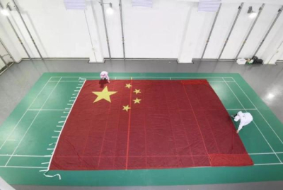 图4 国庆70周年空中飞行梯队所使用的巨幅国旗在制作中(图片取自网络)