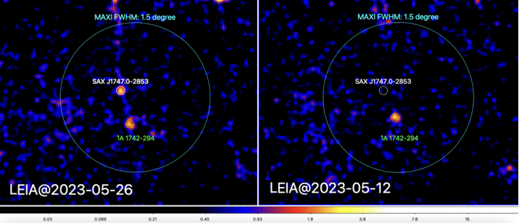 图2 LEIA发现的X射线暂现源(左图)触发了Swift天文台对其观测(右图)[1]