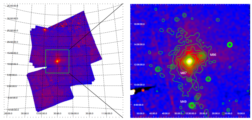 图4 LEIA对Virgo天区观测图像:叠加图(左图),星系团图像(右图)[1]