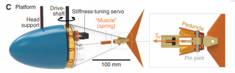 [3] Zhong, Q., Zhu, J., Fish, F. E., Kerr, S. J., Downs, A. M., Bart-Smith, H., & Quinn, D. B. (2021). Tunable stiffness enables fast and efficient swimming in fish-like robots. Science Robotics, 6(57), eabe4088.
