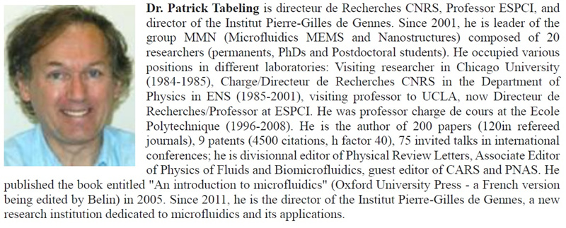 Prof. Tabeling 将介绍微纳尺度高分子非牛顿流的相关速度、流变测量,以及其中的物理问题和相关实际应用。