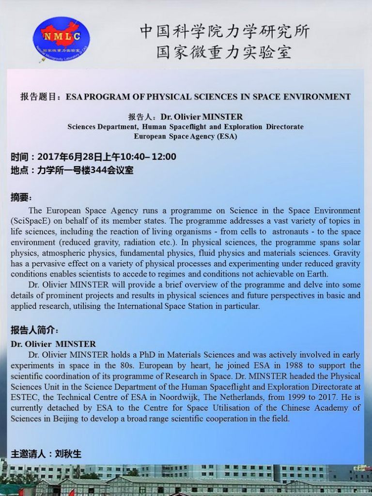 (6月28日10:40)ESA PROGRAM OF PHYSICAL SCIENCES IN SPACE ENVIRONMENT