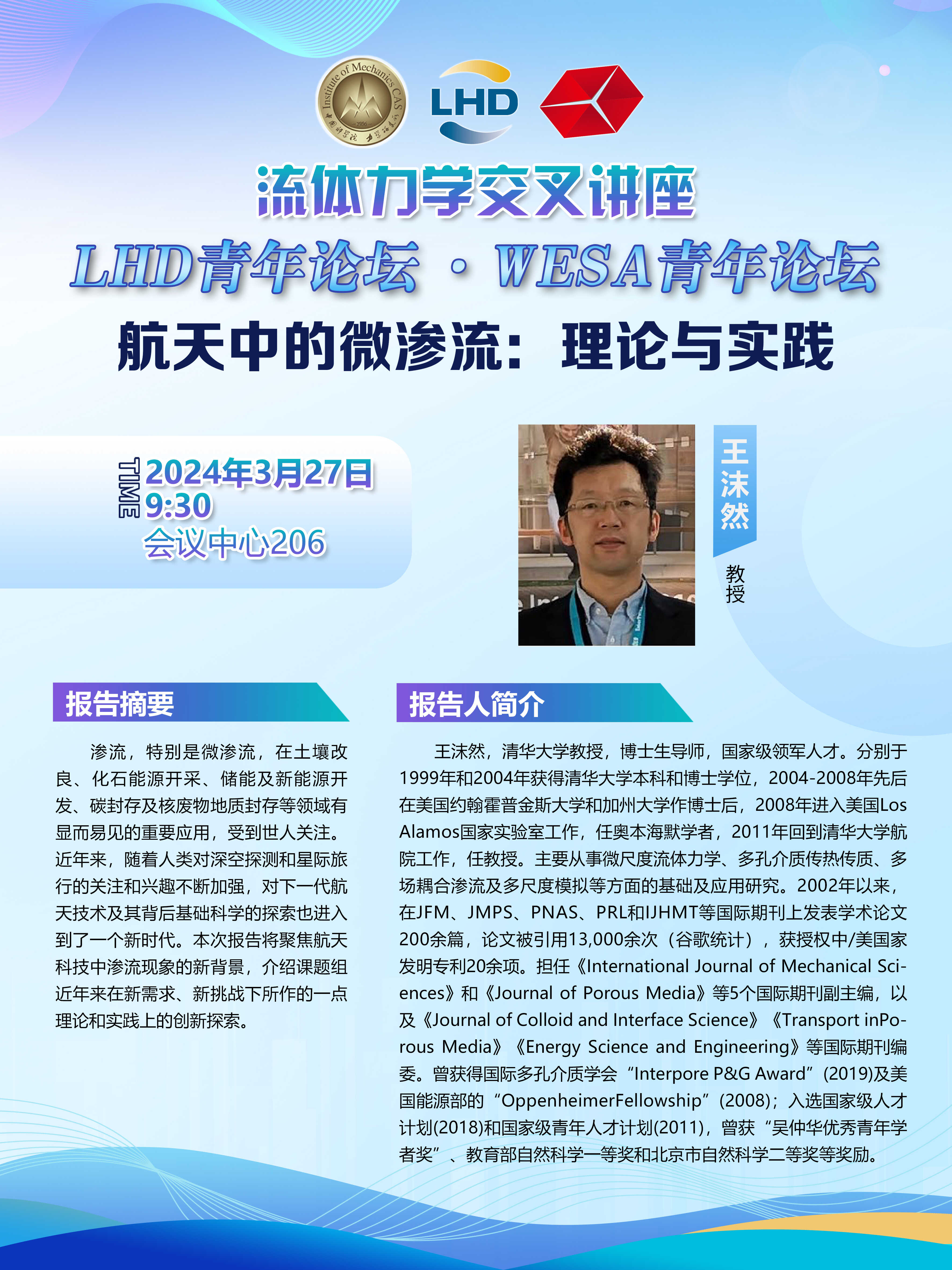 (LHD青年论坛&WESA青年论坛 3月27日 9:30 会议中心206)航天中的微渗流:理论与实践