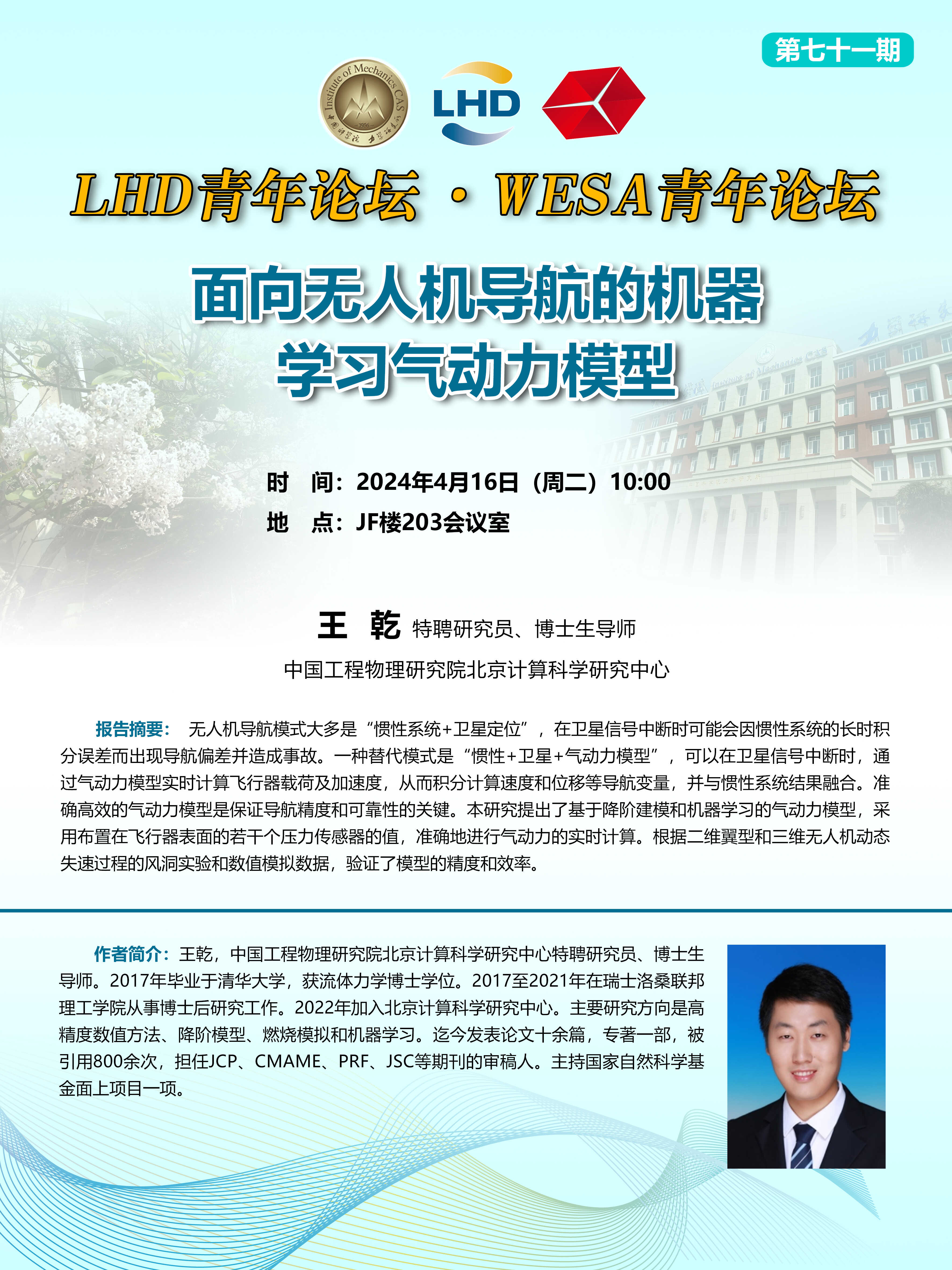 (LHD青年论坛&WESA青年论坛 4月16日 10:00 JF楼203)面向无人机导航的机器学习气动力模型