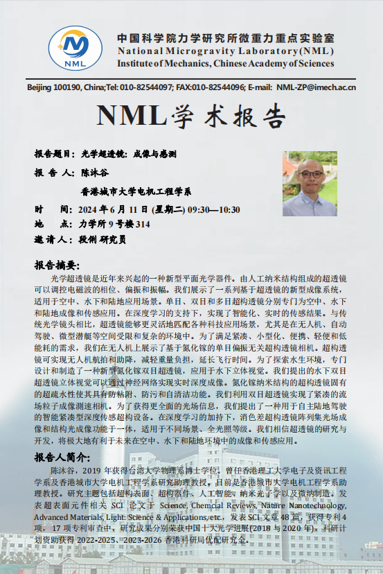(NML学术报告 6月11日 9:30 9号楼314会议室)光学超透镜:成像与感测